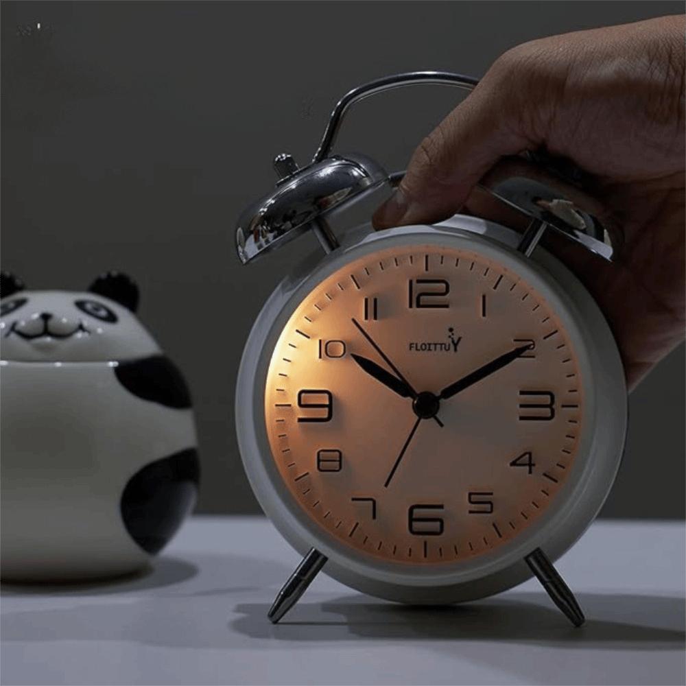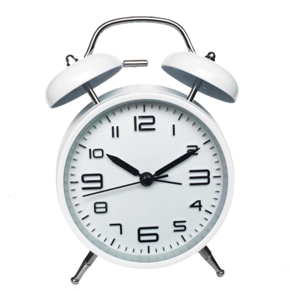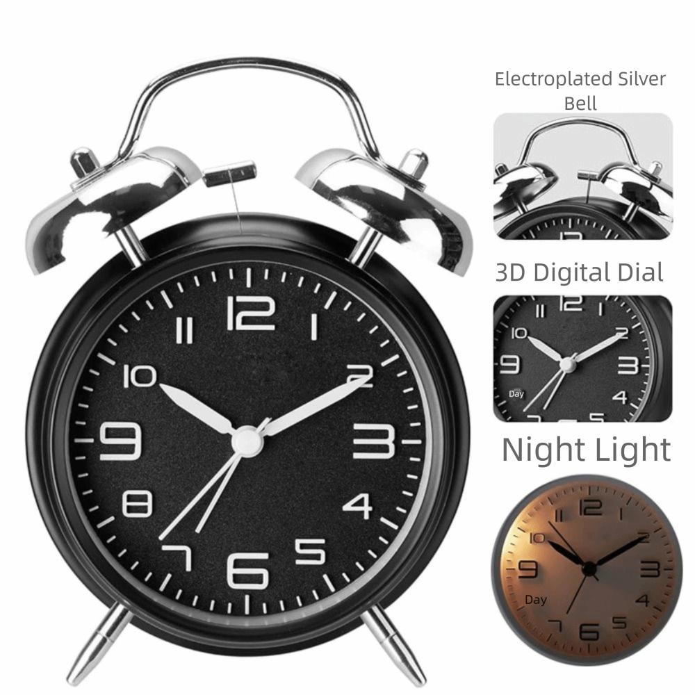 4 Inch Twin Bell Loud Alarm Clock Luminous Metal Frame Silent Student Alarm Clock Strong Wake-up Mute Table Clock Living Room