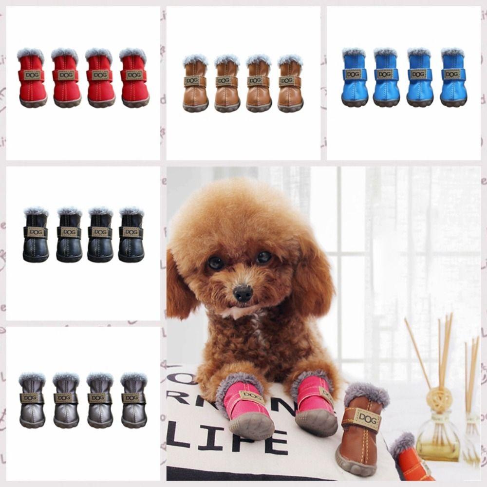 Теплые ботинки для собак, Зимние водонепроницаемые ботинки для питомцев, Мягкая зимняя обувь для собак, Нескользящая /ПУ обувь для собак, Дождевики для 4 шт./компл. для кошек