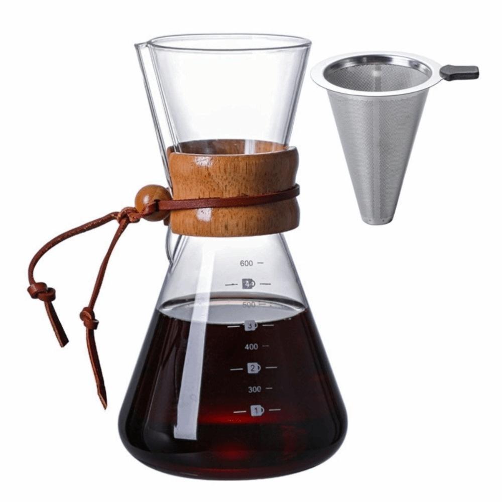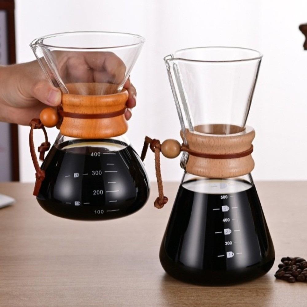 Кофейник из нержавеющей стали для заваривания кофе методом пуровер, стеклянный чайник с деревянной ручкой, термостойкий, 400 мл/600 мл, кофейная посуда для дома