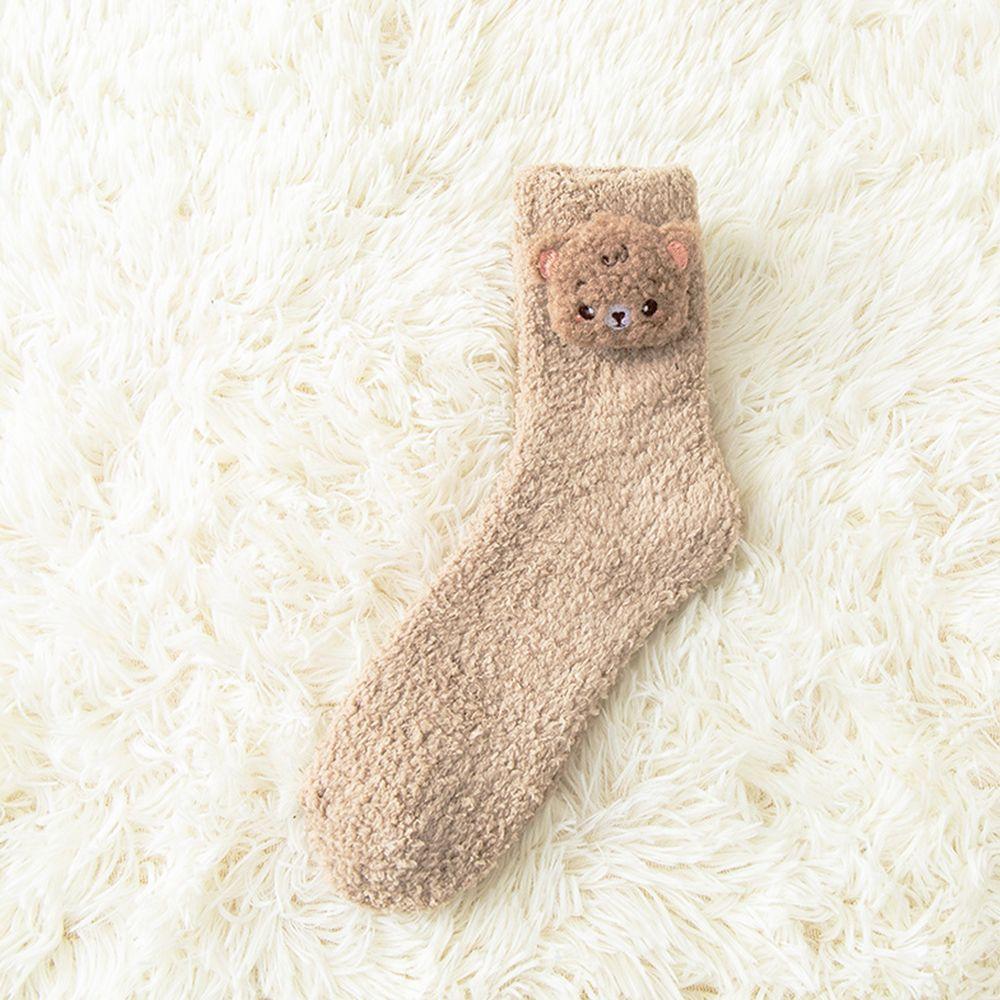 Fashion Design Warm Bear Middle Tube Bunny Korean Style Floor Socks Cartoon Hosiery Women Frog Socks Coral Fleece Socks