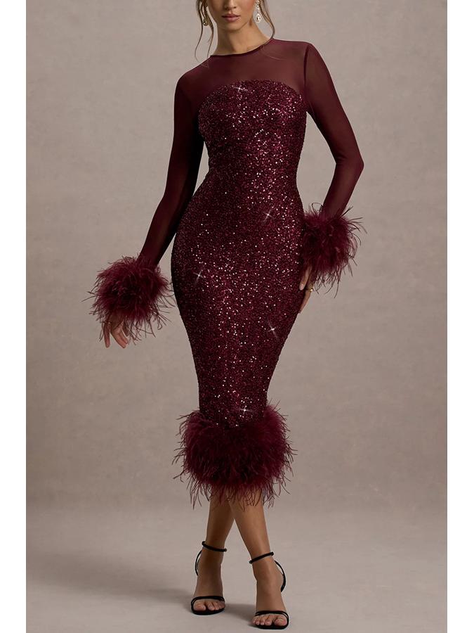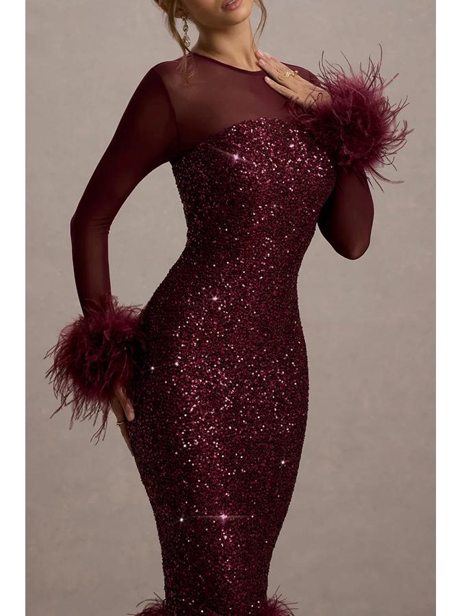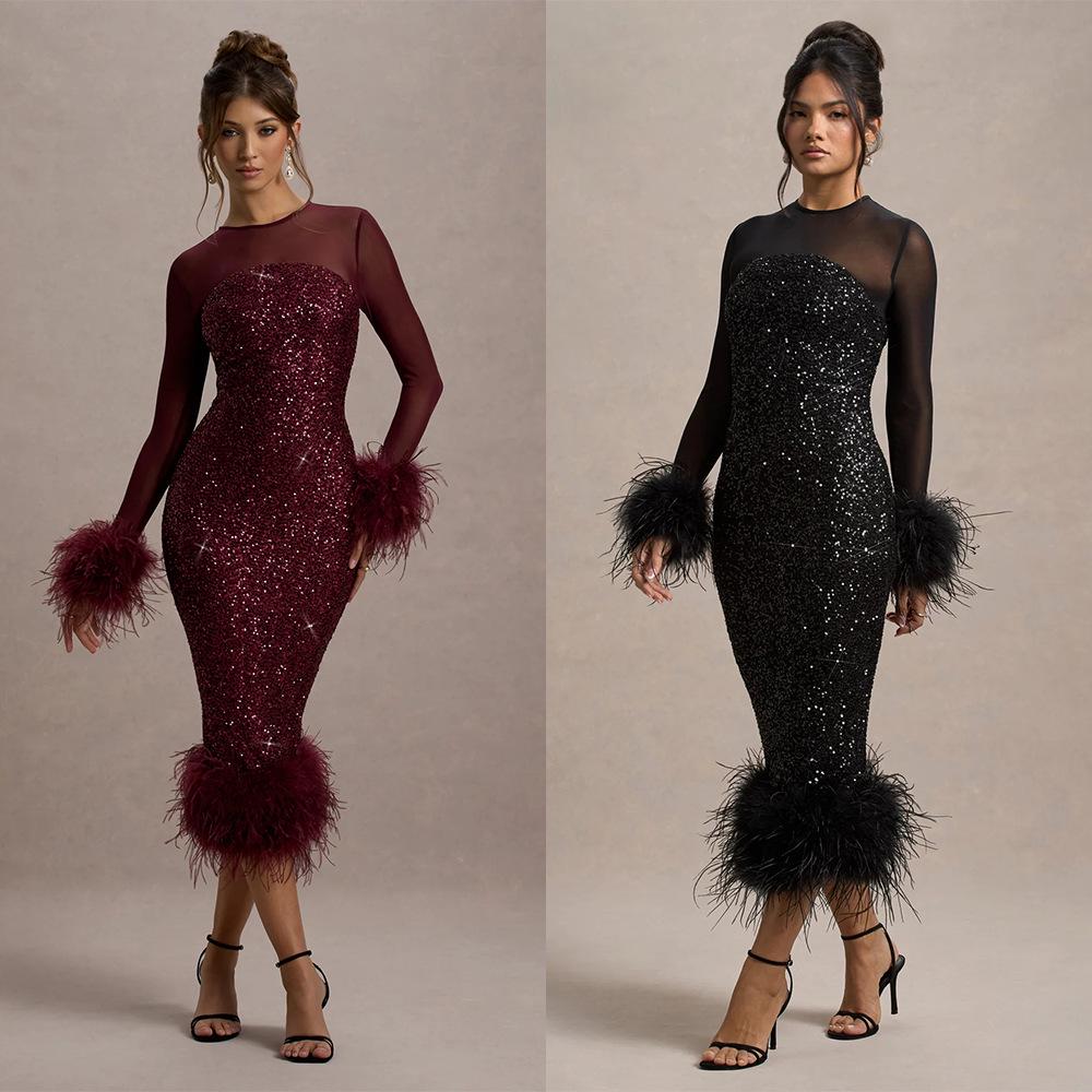 Женское европейское и американское платье-бодикон с пайетками для вечеринки - Вечернее платье с длинным рукавом Мода 8103