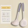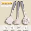 Серый и белый силиконовый набор кухонной утвари: Жаростойкий, антипригарный скиммер, лопатка и суповая ложка