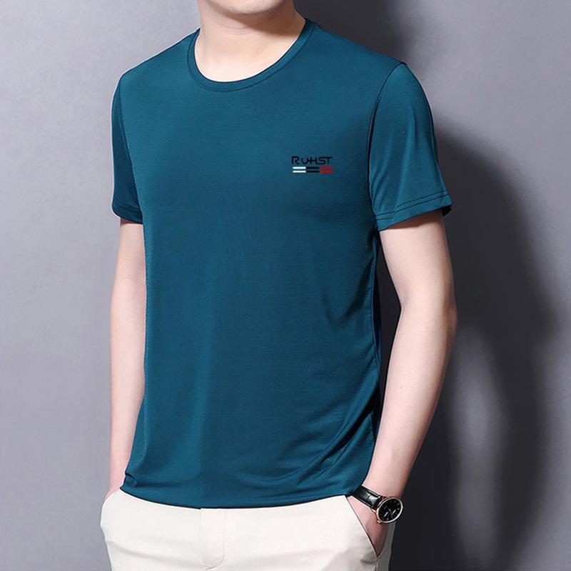 Мужская приталенная быстросохнущая футболка из ледяного шелка - Короткий рукав, Круглый вырез, Однотонная, Дышащая, Большой размер