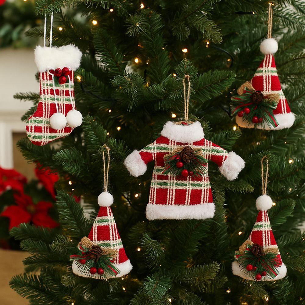 Merry Christmas Plush Christmas Tree Pendant Glove Grid Xmas Sock Hanging Ornament Clothing Christmas Decorations Shop Display
