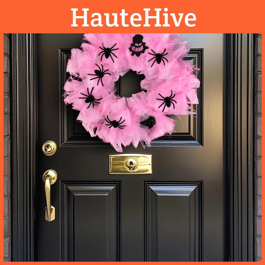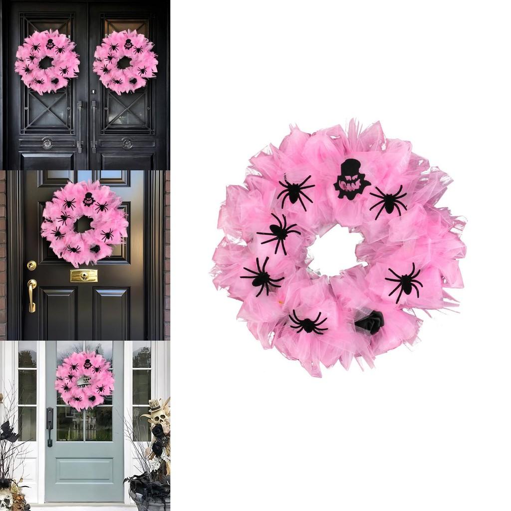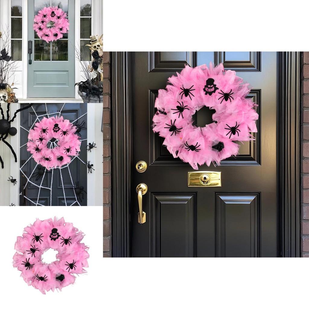 Halloween Spider Wreath Door Hanging Ornament With Pink Mesh For Party Decor And Venue Setup