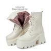 Модная женская обувь до щиколотки AIYUQI на платформе и высоком каблуке 2025 из натуральной кожи, шерстяные теплые зимние ботинки, женские модные ботинки в байкерском стиле на шнуровке