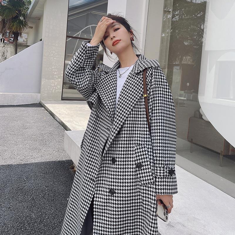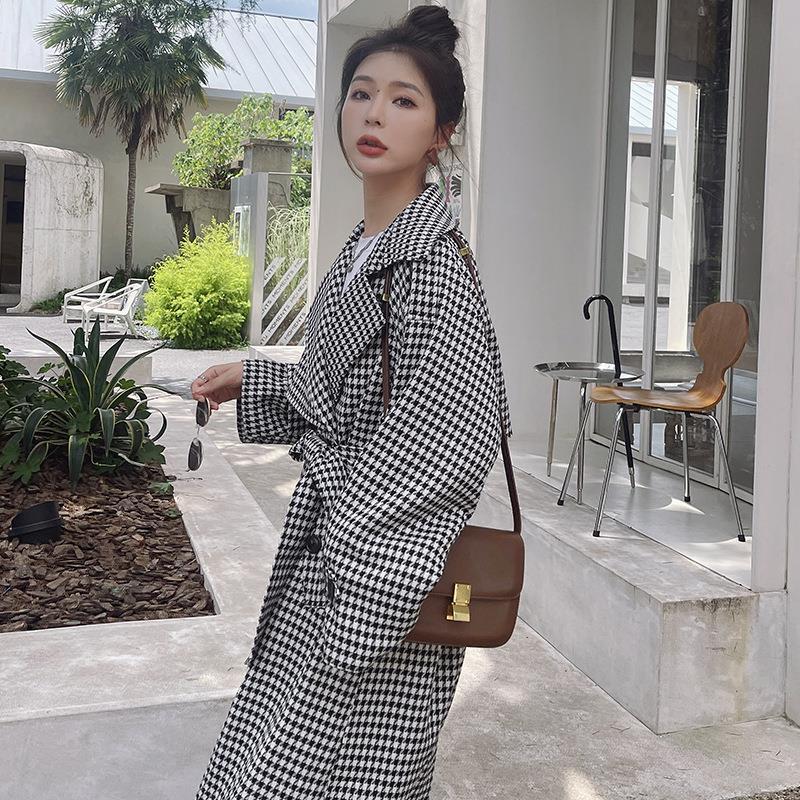 Ветровка женская средней длины с рисунком «гусиная лапка», повседневное пальто в британском стиле на талии