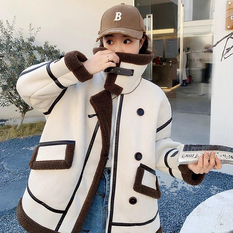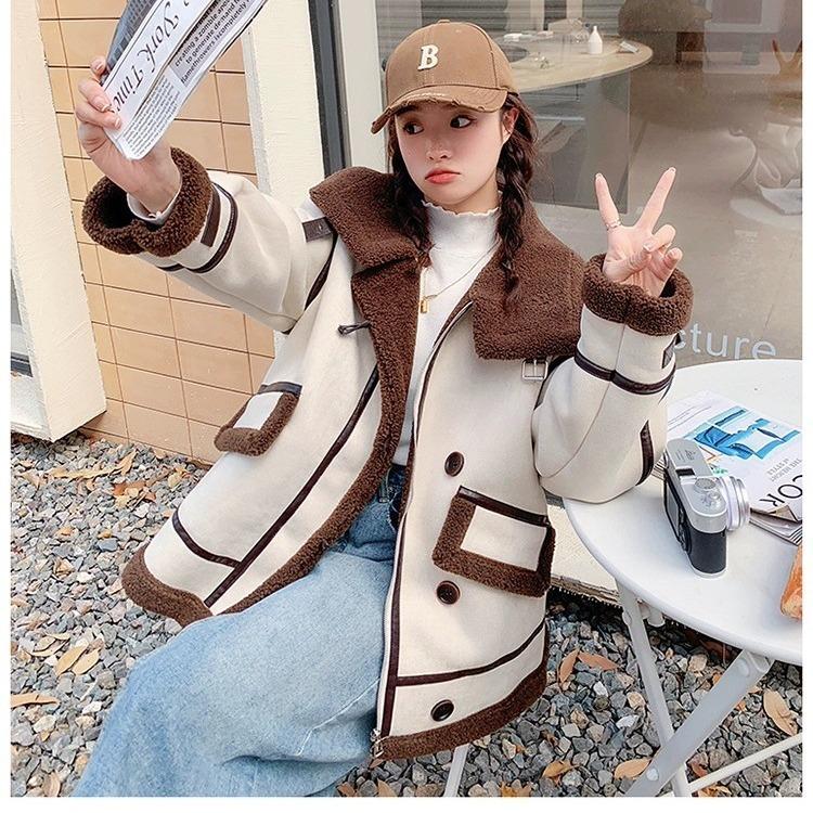 Женское меховое цельное пальто из овечьей шерсти для женщин на осень и зиму, утолщенное и теплое для маленьких людей, замшевая плюшевая большая одежда