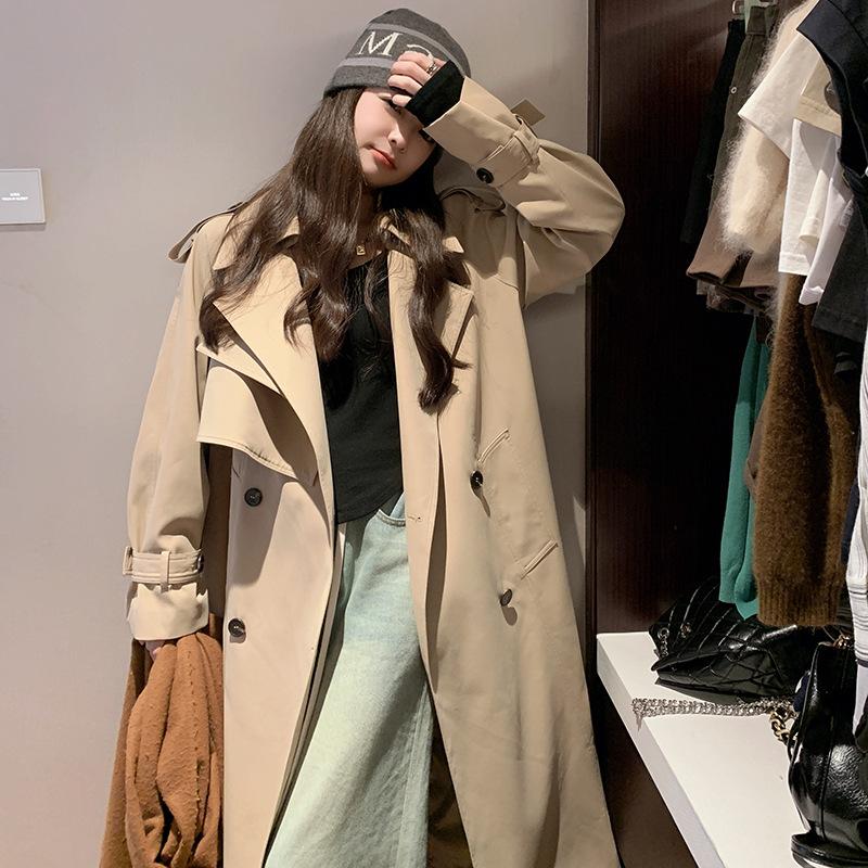 Популярная в этом году куртка-ветровка цвета хаки для женщин, весна и осень, новый корейский стиль, повседневный иностранный стиль, длинное пальто длиной до колена