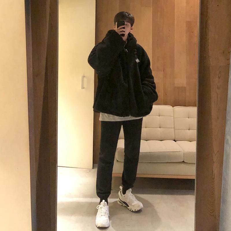 Куртка из овечьей шерсти в корейском стиле, мужская свободная куртка, студенческая подростковая куртка с хлопковой подкладкой, утолщенная бархатная куртка с хлопковой подкладкой