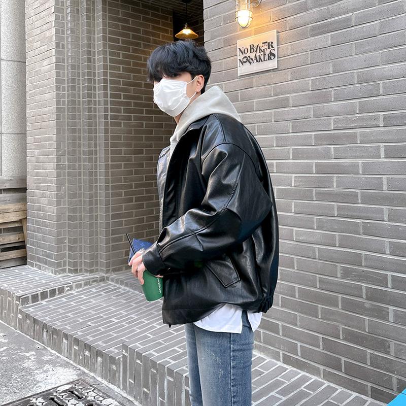 Мотоциклетная кожаная куртка для мужчин на осень и зиму, утолщенная, корейский стиль, модная, свободная, красивая, ретро, рабочая кожаная куртка, куртка