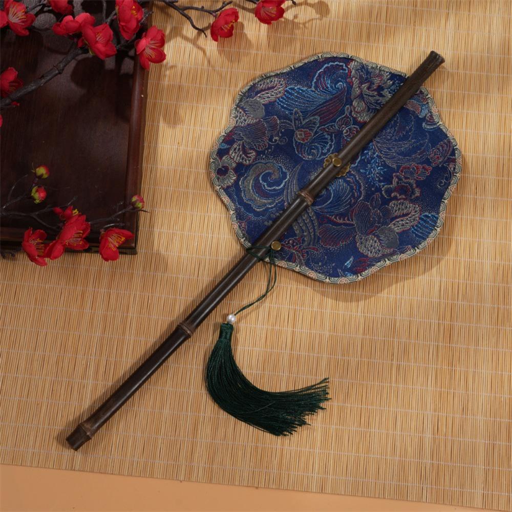 Китайский бамбуковый веер в древнем стиле, сворачивающийся, складной, с длинной ручкой, охлаждающий, с кисточкой, групповой веер, реквизит для выступлений