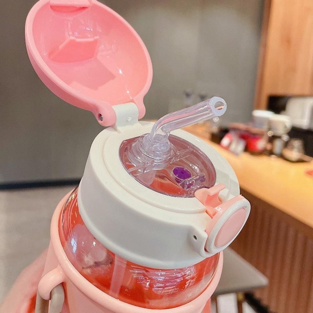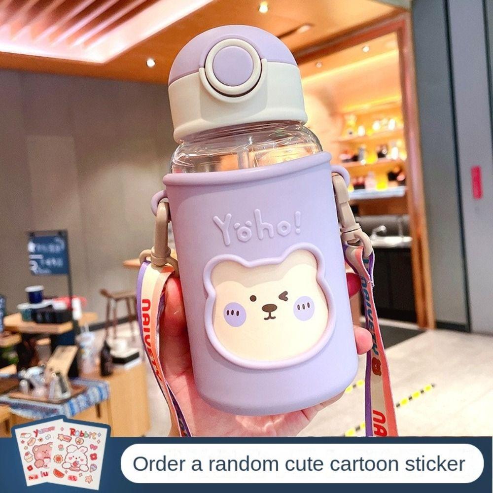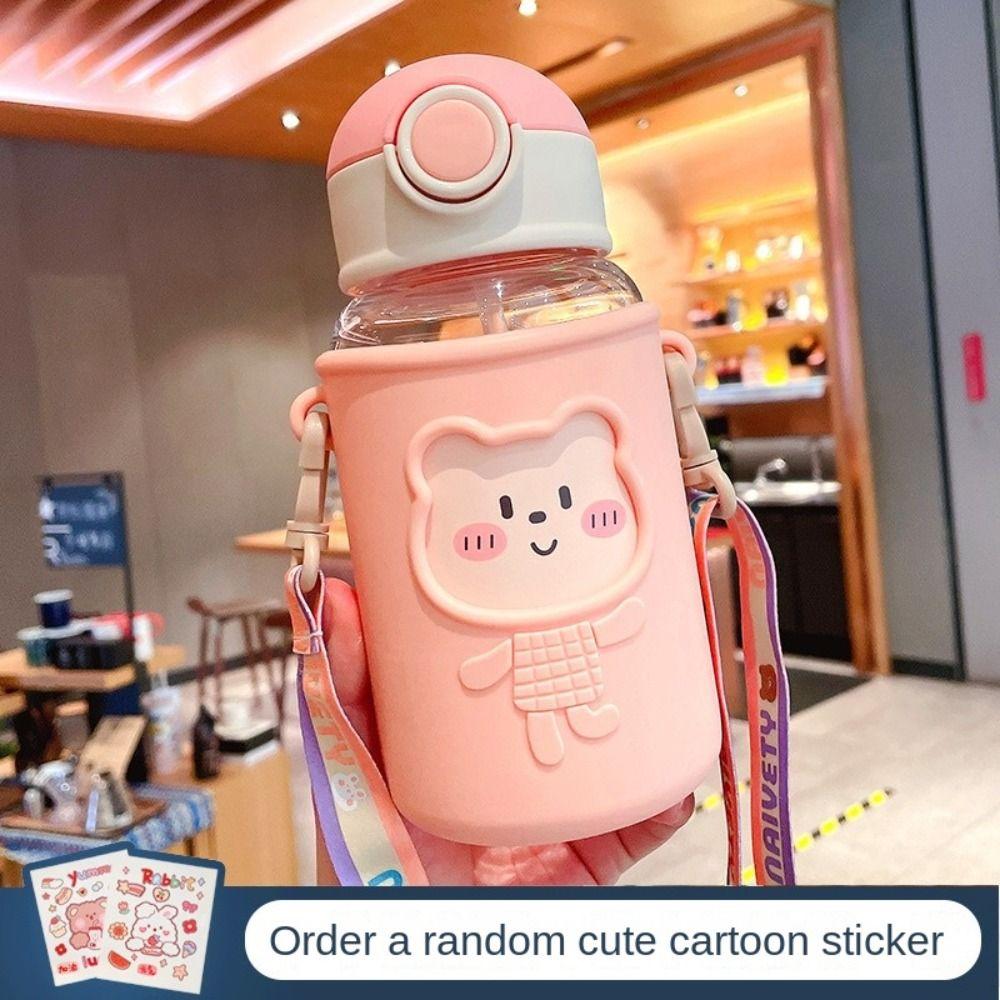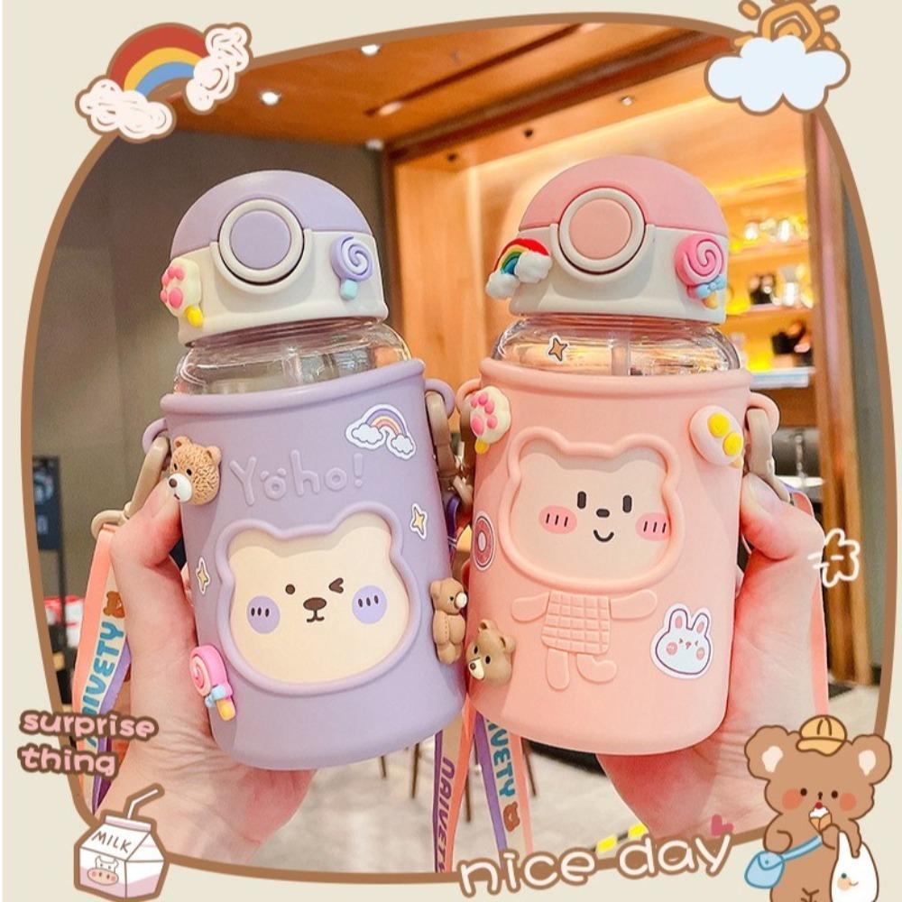Мультяшная бутылка для воды с мишкой, пластиковая, портативная, детская, с трубочкой, 620 мл, большая емкость, герметичная, стакан для питья, школьная, для мальчиков и девочек