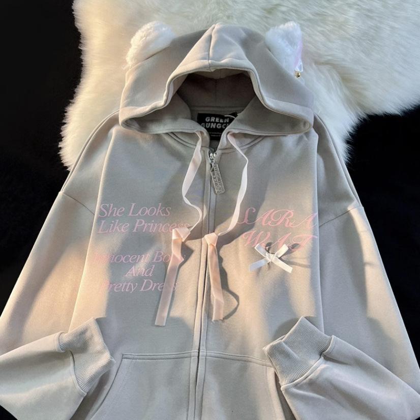 Американский сладкий и крутой ветер кошачьи ушки с капюшоном свитер женский весна и осень 2025 года дизайнерское чувство нишевый ленивый шик парный кардиган — купить товар онлайн с бесплатной доставкой по всему миру!