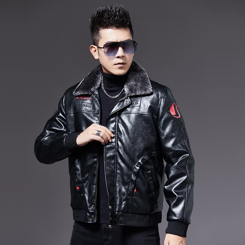 Кожаная куртка мужская куртка молодежная флисовая кожаная куртка с короткими лацканами приталенная