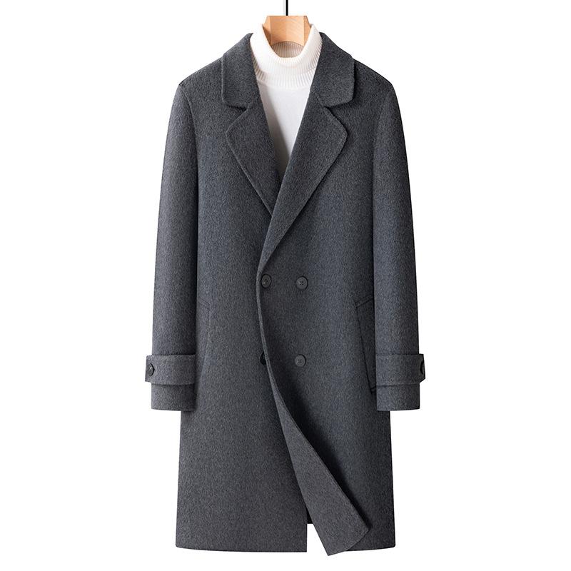 Осенне-зимнее длинное мужское свободное двубортное шерстяное пальто для молодежи и людей среднего возраста, утепленное ветровка