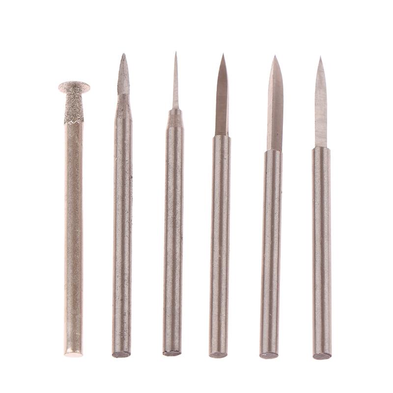 3. Эти сверла для резьбы по дереву, оснащенные заостренным ножом в форме меча, обеспечивают легкий доступ в узкие места и обычно используются для рисования линий, резьбы по дереву, ядерной резьбы, надписей и черновой обработки.. 4. В набор также входит трехлопастная заостренная фреза, подходящая для резьбы, скульптуры, полировки, сверления, и алмазная шлифовальная головка для быстрой восстановления остроты лезвия и продления срока его службы.