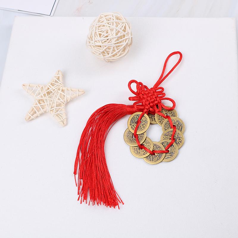 Китайский фэн-шуй, счастливые монеты, богатство, 9 императорских монет, подвесная веревка для дома и автомобиля