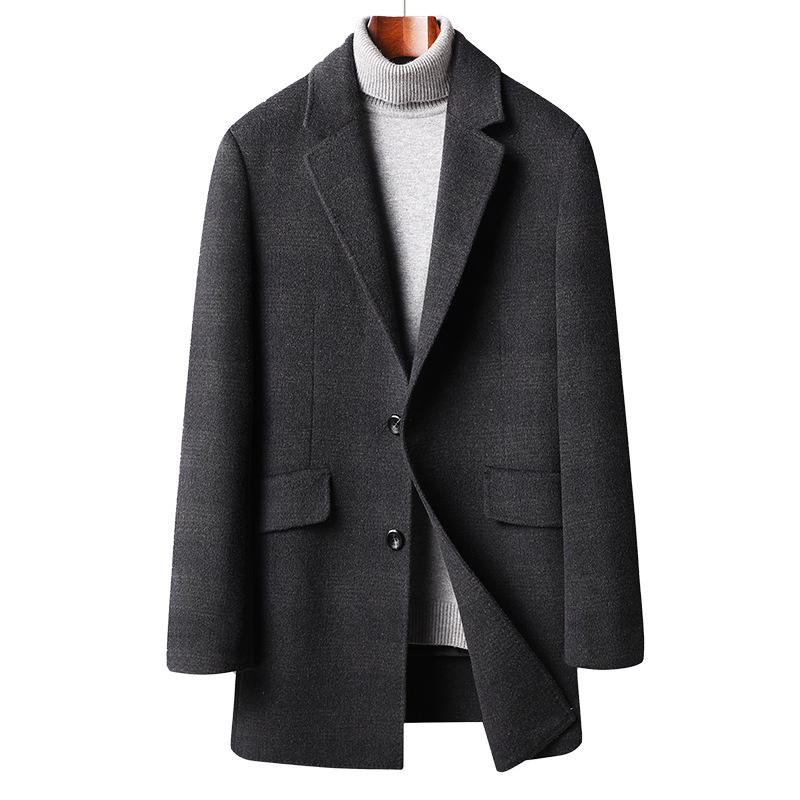 Осенне-зимнее утепленное двухстороннее шерстяное пальто с пуховой подкладкой Мужское кашемировое шерстяное пальто Средней длины Шерстяное двухстороннее шерстяное пальто