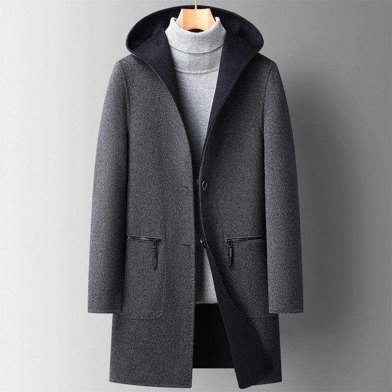 Осенне-зимнее мужское пальто с капюшоном средней и длинной длины Тренчкот Мужское молодежное трендовое пальто