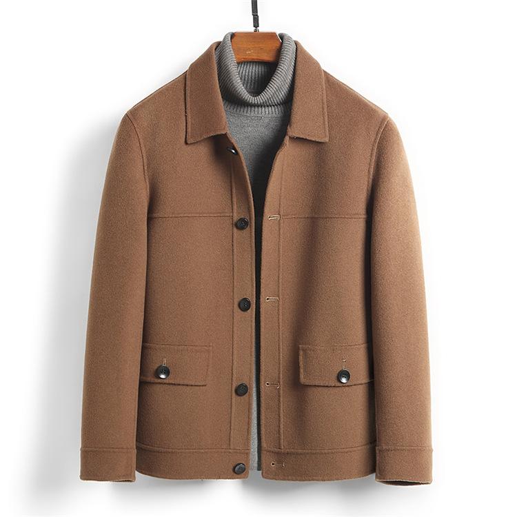 Шерсть Двусторонняя шерстяная осень и зима Новое шерстяное пальто Мужское короткое пальто без кашемира