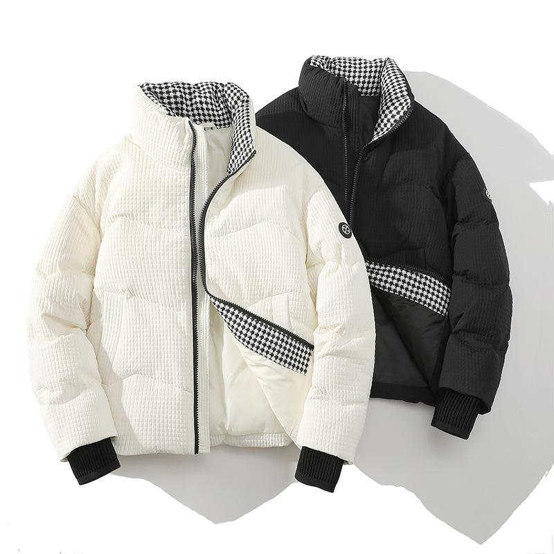 Пуховик мужской новый стиль утолщенный воротник-стойка белый утиный пух свободный хлеб пальто женский пара