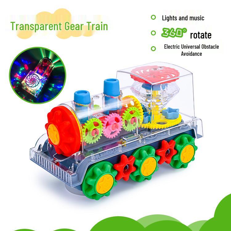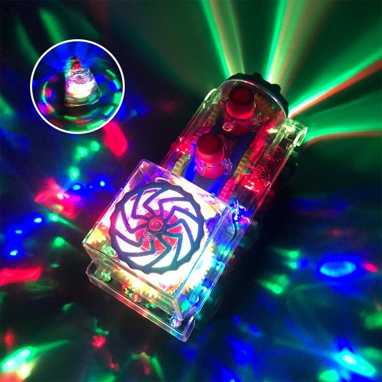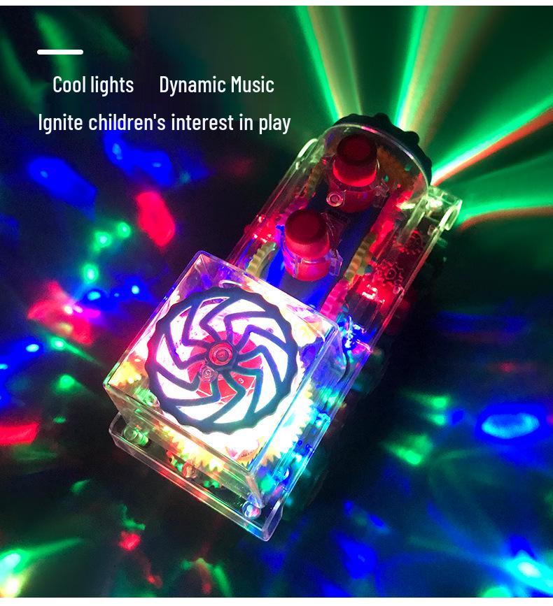 Прозрачный вращающийся локомотив с разноцветными огнями и музыкой - подарок на день рождения для детей