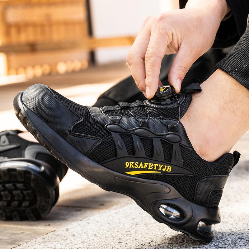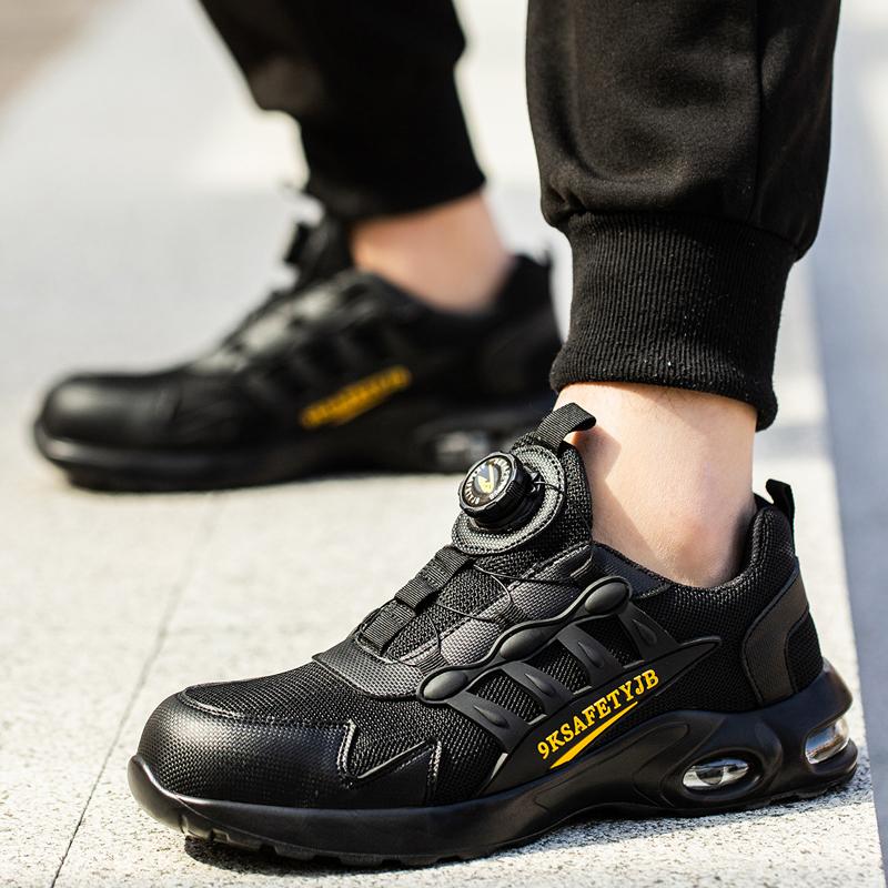 Защитная обувь с вращающимися пуговицами, мужские кроссовки со стальным носком, устойчивые к проколам рабочие защитные ботинки, спортивная рабочая обувь, мужские ботинки с защитой от ударов, черные