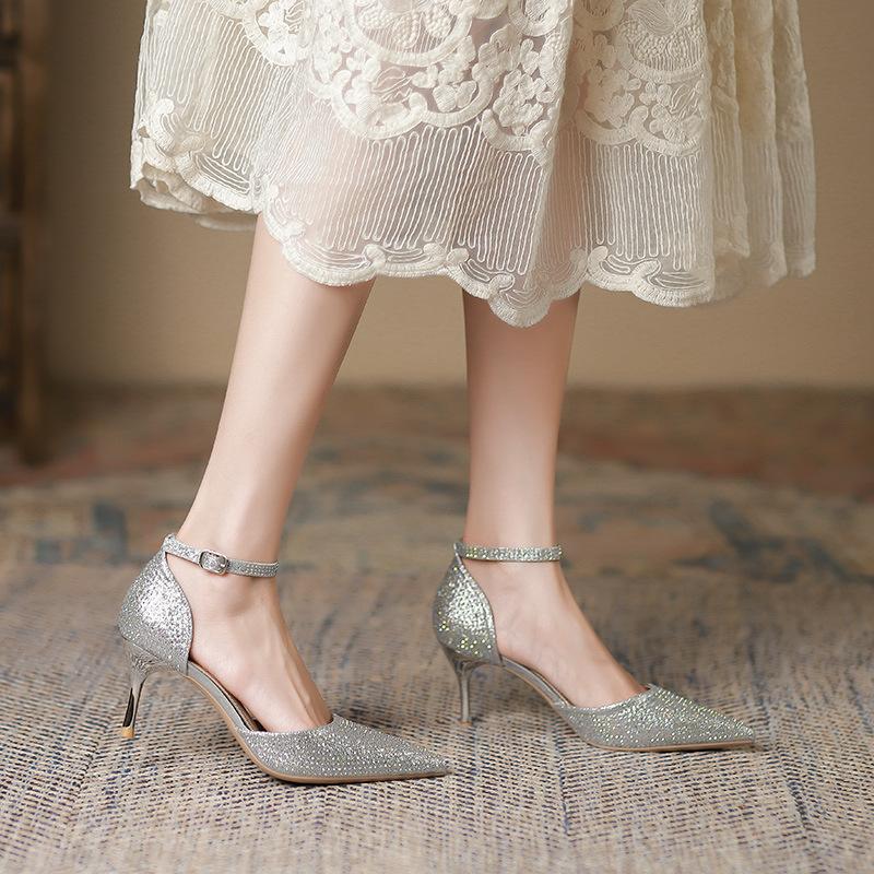 Босоножки на высоком каблуке со стразами, пикантные туфли на высоком каблуке с пряжкой, острые сандалии на шпильке, женские