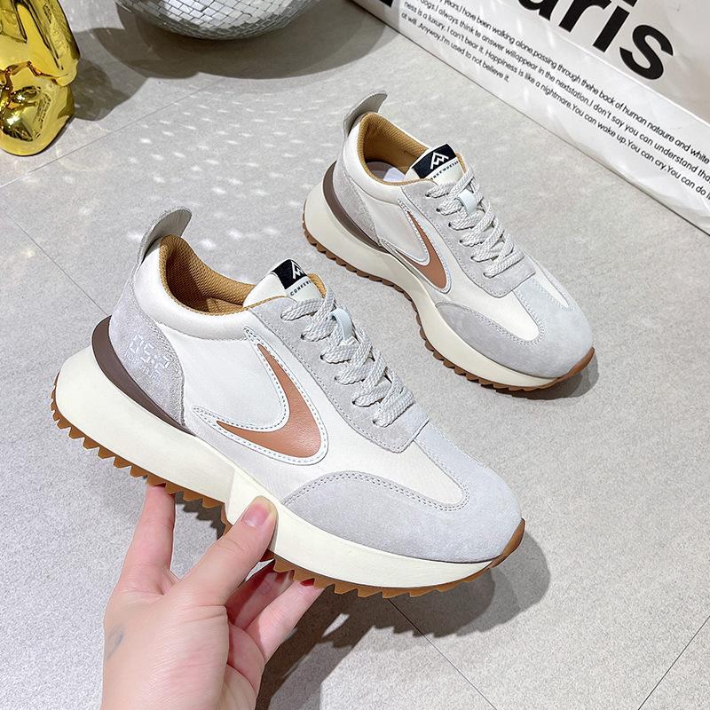 Обувь Forrest Gump из натуральной кожи с небольшой талией, женские весенние новые модные повседневные спортивные туфли для пап на толстой подошве