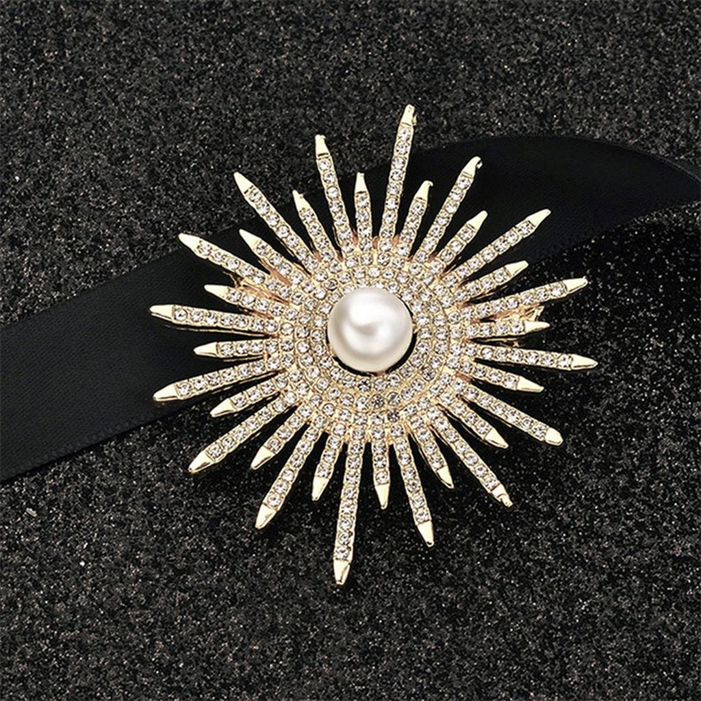 Броши Искрящийся Подсолнух Жемчуг Женские Полностью Стразы Брошь Костюм Свитер Роскошная Одежда Лацкан Значок Аксессуары Ювелирные Изделия Подарки
