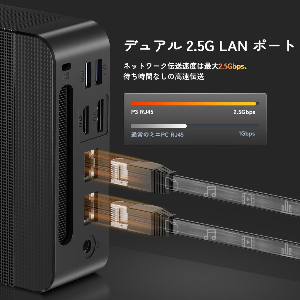 Мини-игровой ПК P3, AMD Radeon 680M Ryzen 9 6900HX 8C/16T Mini PC, 16 ГБ DDR5 512 ГБ PCIe SSD Mini PC Windows 11 Pro, Dual LAN 2.5G, Wi-Fi 6E, Bluetooth 5.2, три дисплея 4K