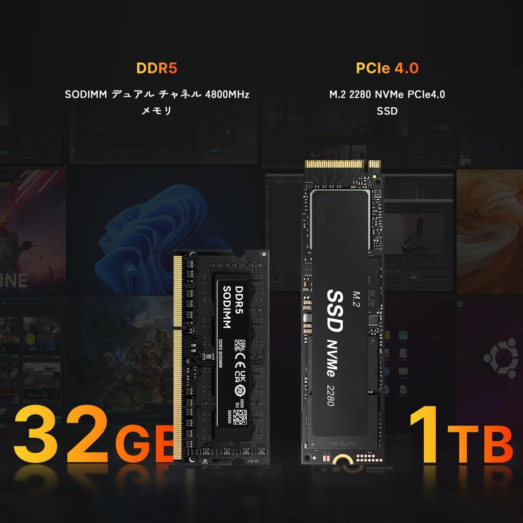 [Два слота для SSD и двухканальная память RAM] Мини-ПК оснащен двухканальной памятью 16 ГБ*2 DDR5 и SSD объемом 1 ТБ M.2 NVMe PCIe4.0, что позволяет вашему компактному ПК одновременно выполнять несколько высокопроизводительных операций при необходимости. Если место позволяет, можно добавить SSD (продано отдельно).
