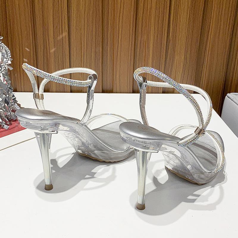 Весенние новые профессиональные сандалии на шпильке с острым носком и кристаллами, модные свадебные женские туфли на очень высоком каблуке