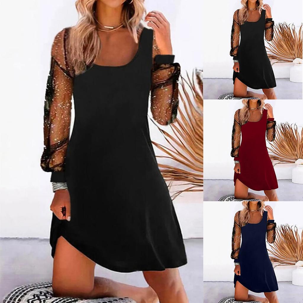 Женское сексуальное модное однотонное сетчатое платье с квадратным вырезом и длинными рукавами