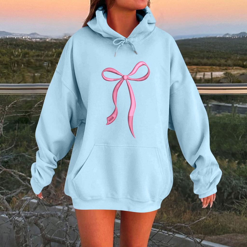 Ladies Spring Bow Printed Pullover Hooded Sweatshirt Fleece Long Sleeve Sweatshirt