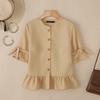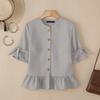 ZANZEA Женская повседневная однотонная блузка с круглым вырезом и рукавом 3/4 — купить товар онлайн с бесплатной доставкой по всему миру!