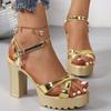 Мода Лето Роскошный Ремешок с Бриллиантовой Пряжкой Женские Туфли-Лодочки Квадратный Каблук Однотонные Туфли Женская Мода ПУ Платформа Высокий Каблук Женские