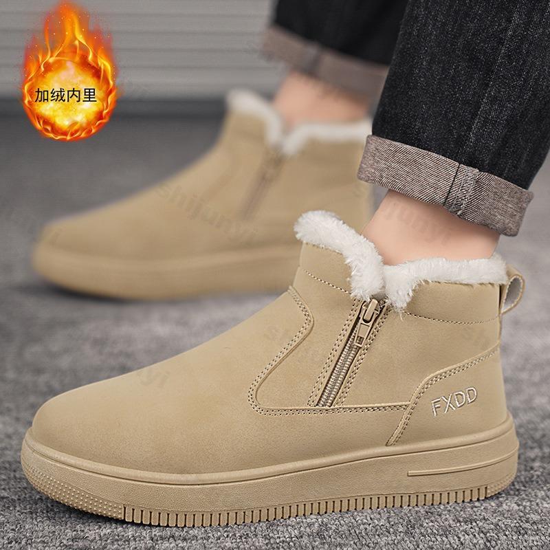 Мода 2025 Зима Новые Мужские Лаконичные Повседневные Высокие Ботинки на Толстой Подошве для Снега Теплые Удобные Модные Универсальные Массивные Плюшевые Хлопковые Ботинки