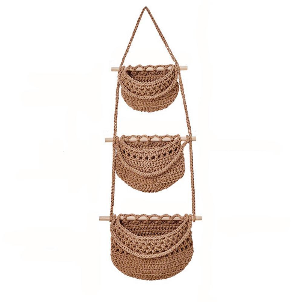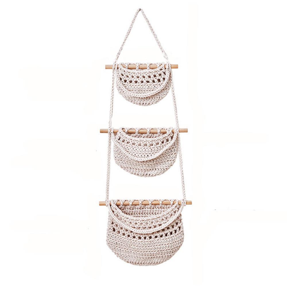 Practical Cotton Rope Hanging Fruit Baskets Handmade Simple 3 Tier Storage Bag Stylish Fruit Net Pocket for Home