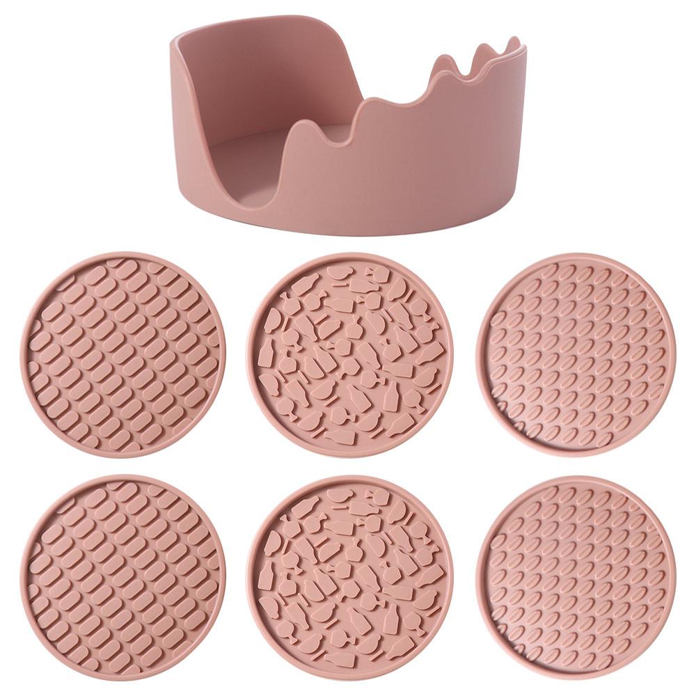 6pcs/Set Round Silicone Drink Coaster Set Tabletop Protection Silicone Cup Pad Heat Insulation Non-Slip Tea Mat Coffee Mug Glass