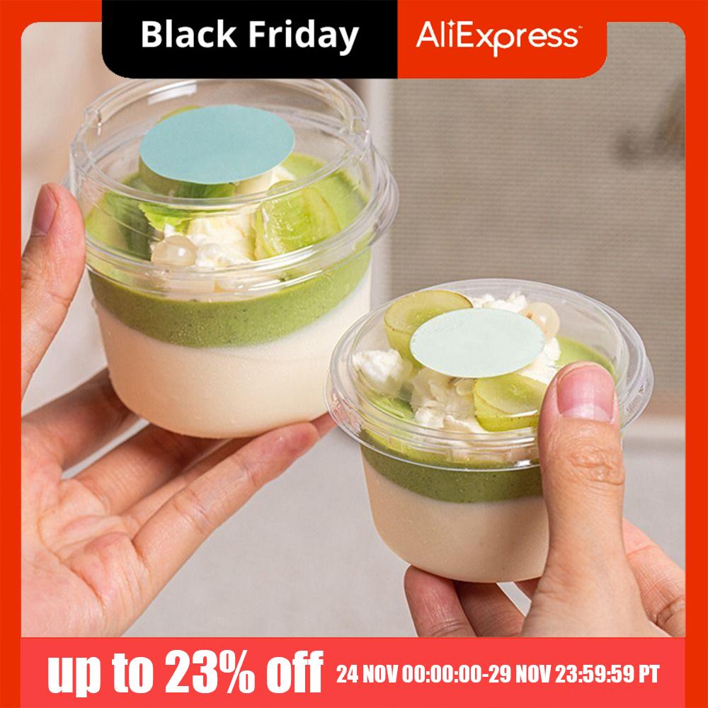 50Pcs 150/250ml Disposable Salad Cups Clear Plastic Round Shape Dessert Cups with Lid Leak-Proof with Lid
