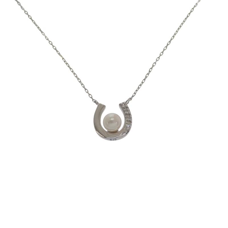 Production features:This is the "Horseshoe Necklace" from Vendome Aoyama, a women's jewelry collection. This piece is crafted with the ever-popular horse hoof motif. The gentle U-shape gently rests against the chest, evoking a refined presence. The lustrous pearl in the center contrasts with the 10K white gold for a sophisticated and elegant look.