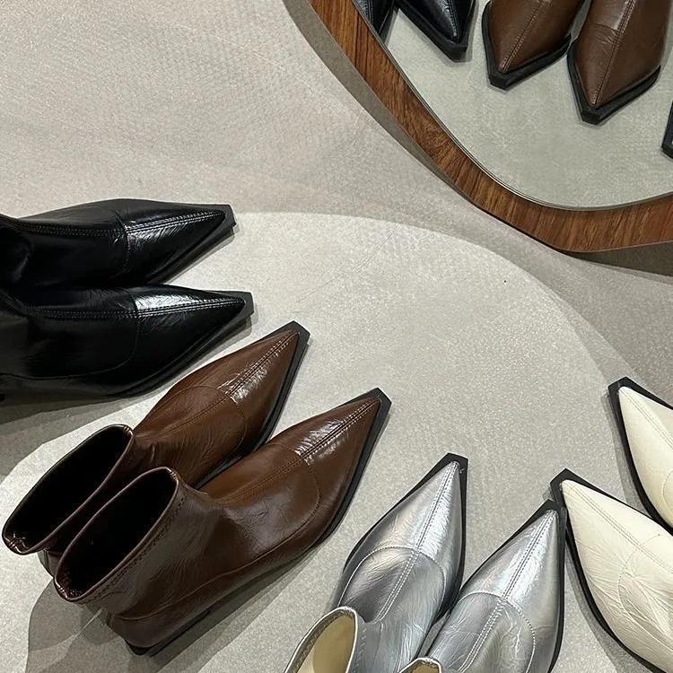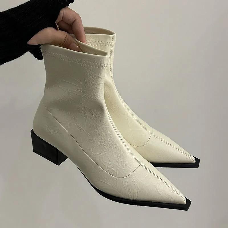 Женские остроносые ботильоны на среднем каблуке, остроносые кожаные сексуальные ботинки челси, трендовый дизайн, зимние новые туфли-лодочки, дизайнерские короткие ботинки для женщин