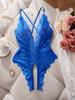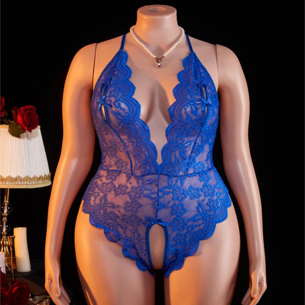 Большой размер Синий Глубокий V Открытый бюстгальтер Сексуальное нижнее белье Без спины Боди без ластовицы Порно Нижнее белье Для эротики Кружево Прозрачный Тедди Бэбидолл