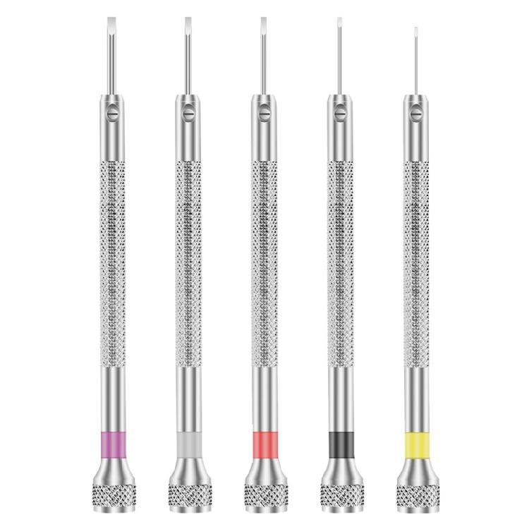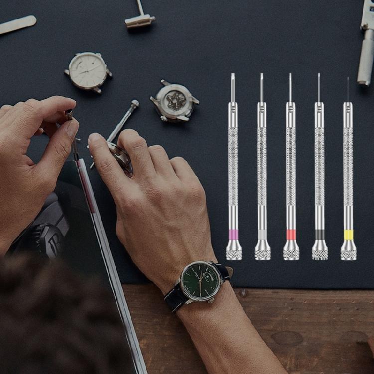 профессиональный (3 шт.) Набор отверток для ремонта часов отличается легкой, но прочной рукояткой из алюминиевого сплава и наконечниками из закаленной углеродистой стали, предназначенными для точной работы с деликатными часовыми механизмами благодаря тонким сменным головкам и вращающемуся хвостовику, снижающему усталость.