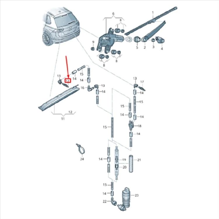 1x Форсунка уплотнителя заднего стекла