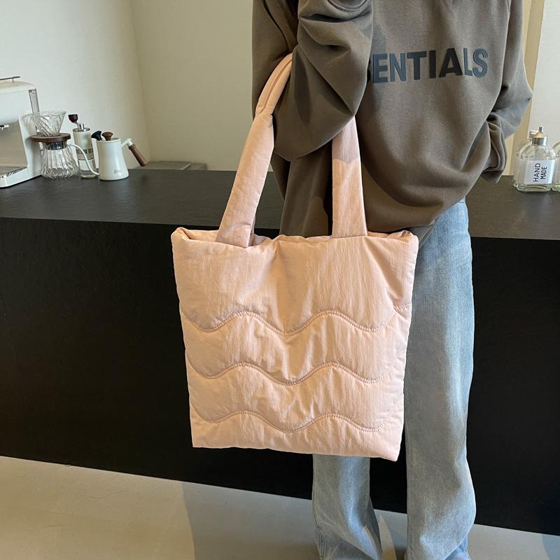 New large-capacity women's shoulder bag personalized simple wavy embroidery thread handbag trendy fashion leisure bag