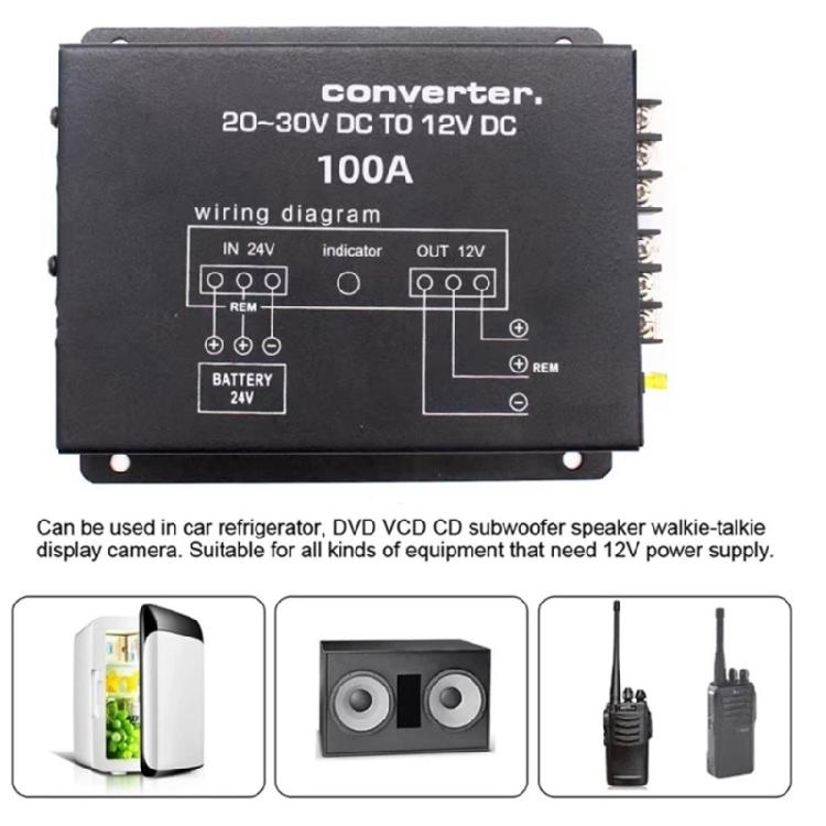 Multipurpose Car Truck Power Adapter 24V To 12V, 720W-1200W Converter Easy Installation For Automobile Electronic Device