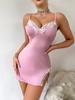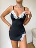 Женское кружевное нижнее белье Lencerias без рукавов с V-образным вырезом, подтяжки, полупрозрачный комплект платья-стрингов, женское белье, ночные сорочки